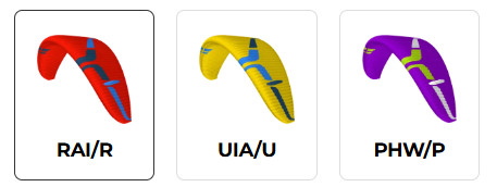 Wing weight may vary up to 50g per size due to slight variations in the manufacturing of the fabric used.