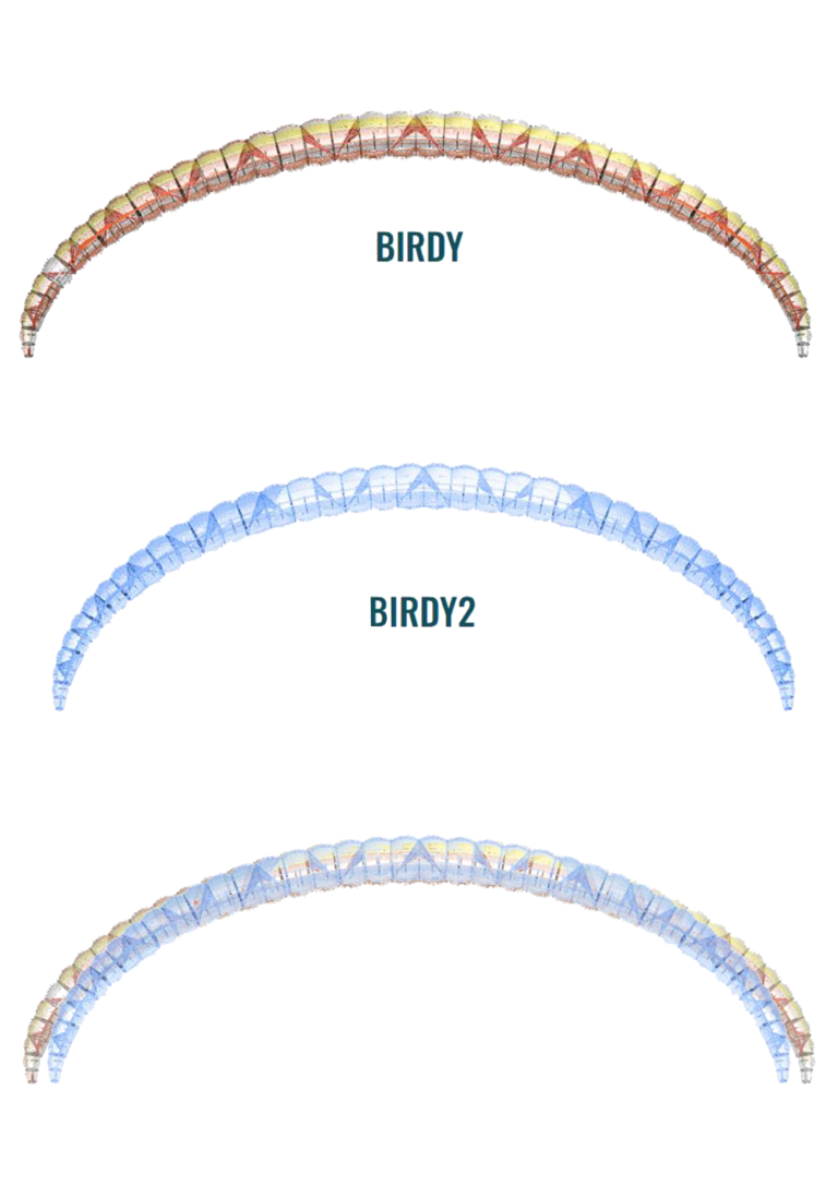 To get the most out of your glider from paraglider, it’s important to be correctly positioned within the Flying weight range range fromglider. This is why the BIRDY2 is available in 6 sizes instead of the usual 5, allowing you to optimize your positioning within the Flying weight range range. To get the most out of your BIRDY2, we recommend that you choose a Flying weight range where you are in the upper half of the range. Don’t hesitate to contact your instructor for personalized advice on your choice of paraglider.
